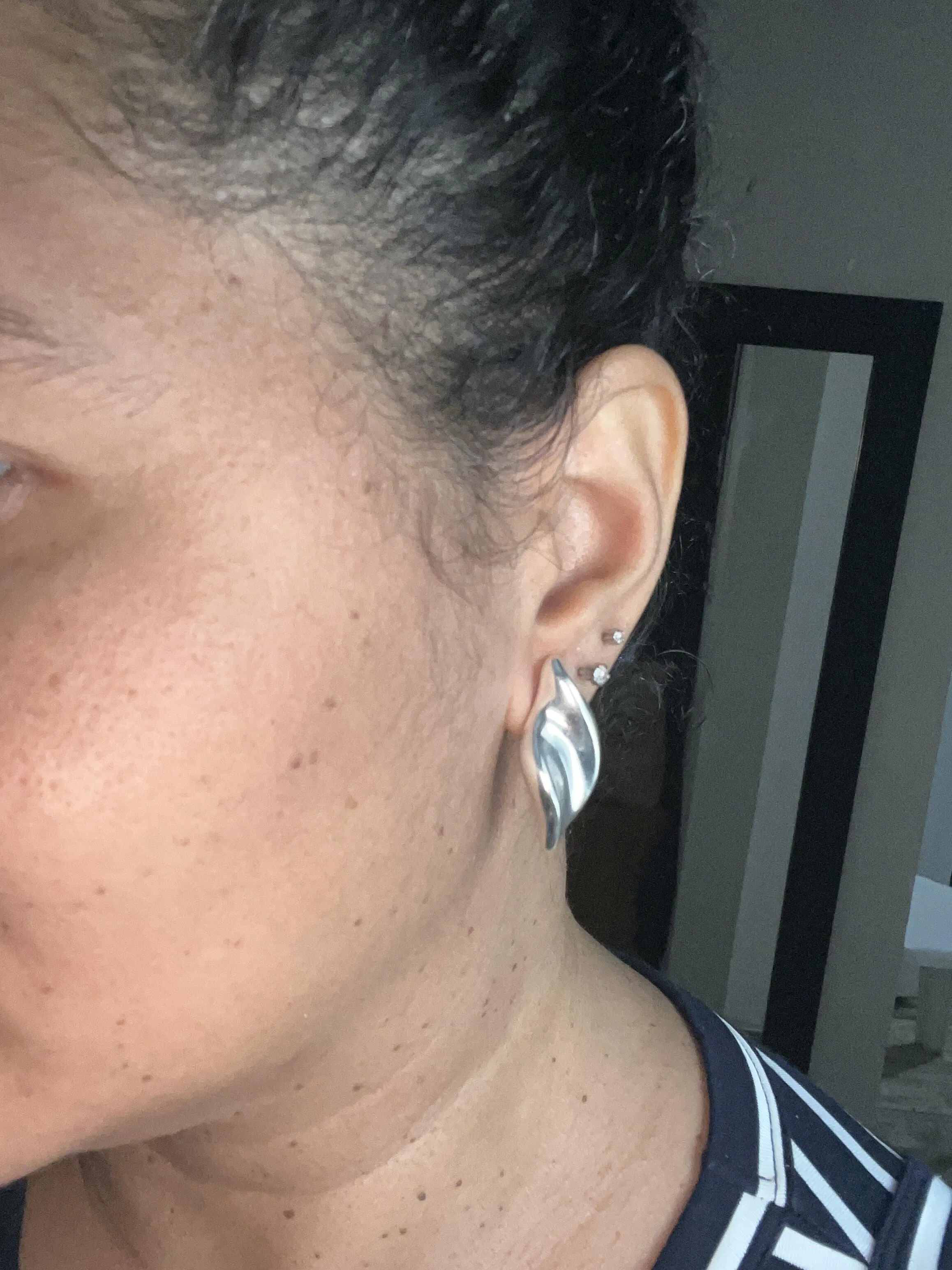 Joia lisa em formato abstrato (orgânico). Peça oca feita por eletroformação. Acabamento de tarraxa.